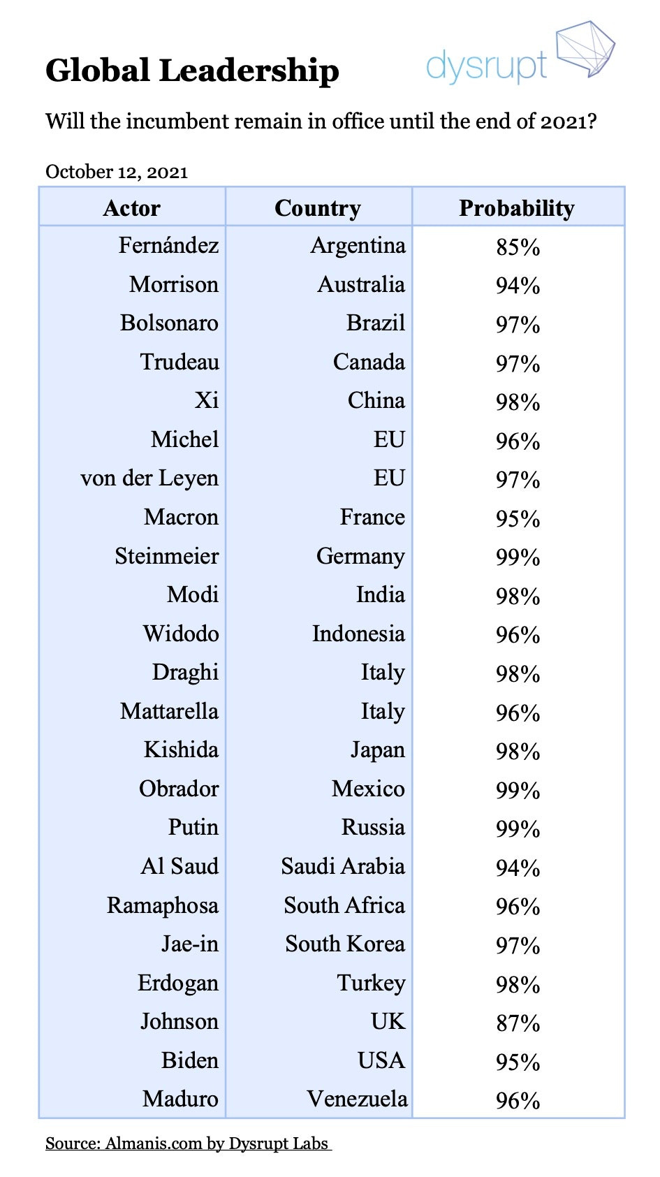 The table above shows probabilities in global leadership as at October 12, 2021.
